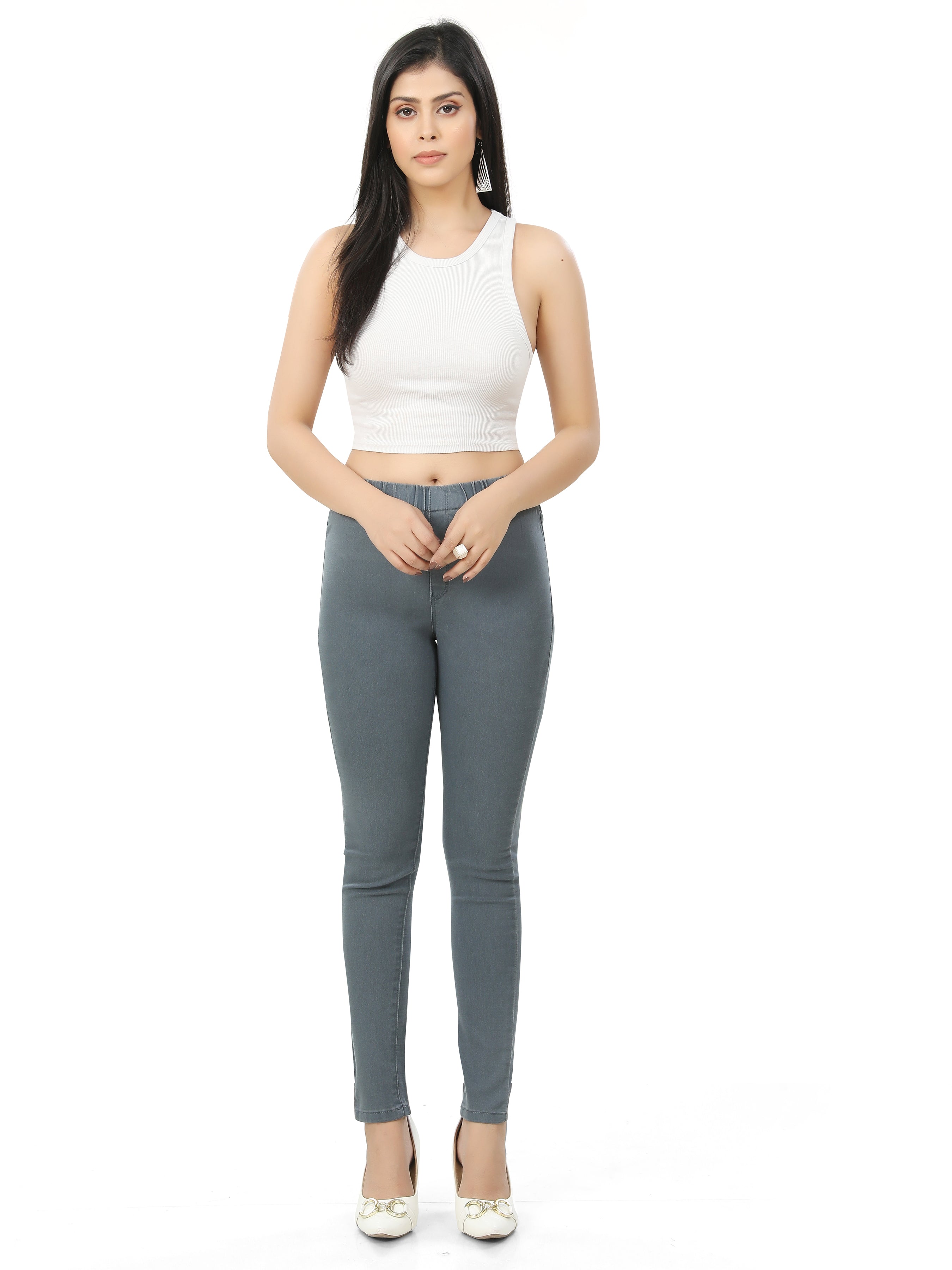 These black ankle-length jeggings from MAG Denim feature a sleek solid pattern in a figure-hugging skinny fit. Tailored from a silky stretch material, this mid-rise bottom wear ensures all-day comfort while offering a flattering silhouette—perfect for pairing with both casual and dressy tops.